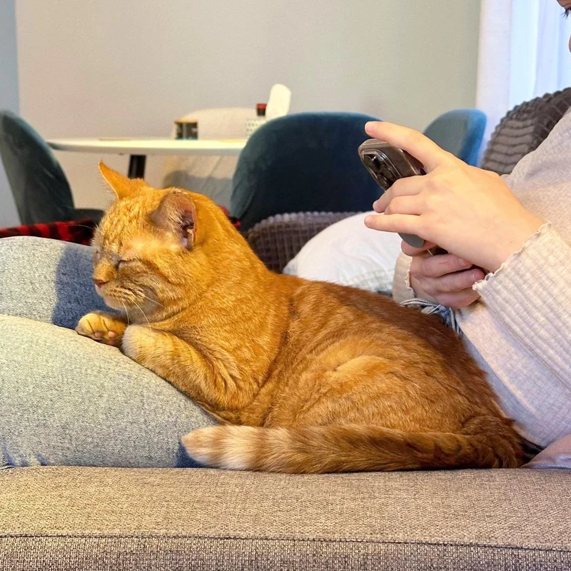 Toen Sherlok eenmaal gewend was aan zijn nieuwe leven, kwam zijn ware persoonlijkheid naar voren. Van een schuwe, overlevende straatkat transformeerde hij in een knuffelige huiskat. Elke dag kwam hij dichterbij zijn pleegouders, totdat hij eindelijk ontspannen op hun schoot in slaap viel.