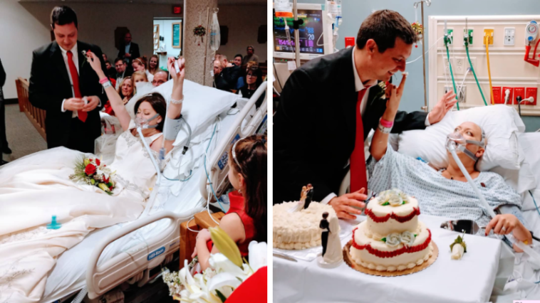 Ondanks de diagnose had Heather één wens: haar trouwdag beleven. Het koppel besloot eerder te trouwen en de bruiloft vond plaats terwijl Heather in het ziekenhuisbed lag, omringd door dierbaren. Haar vrienden en familie hadden haar prachtig opgedoft en ze sprak haar huwelijksgeloften uit.